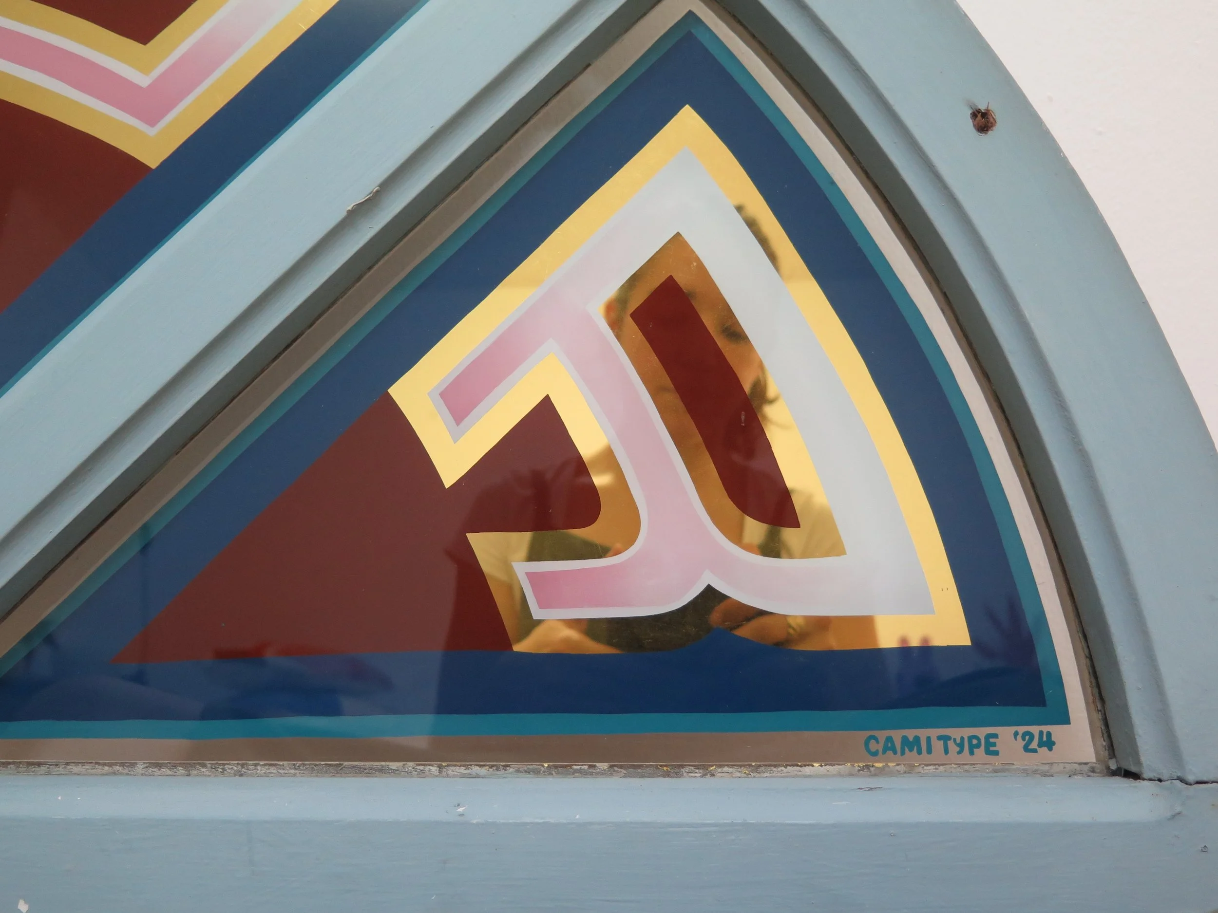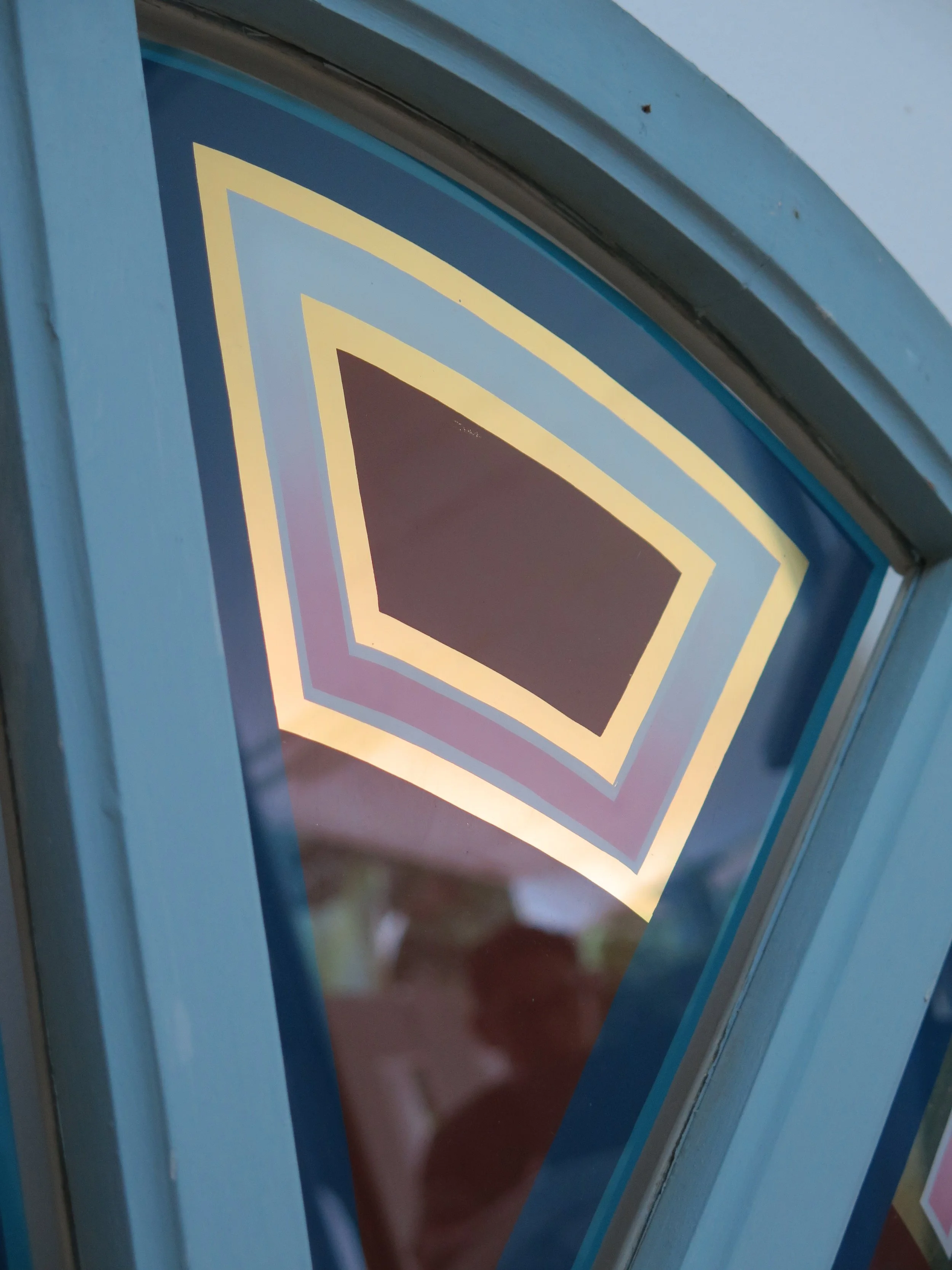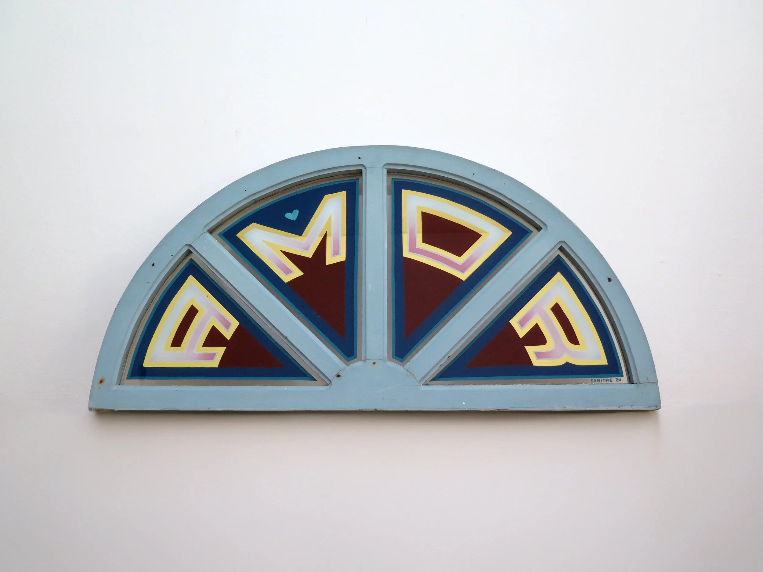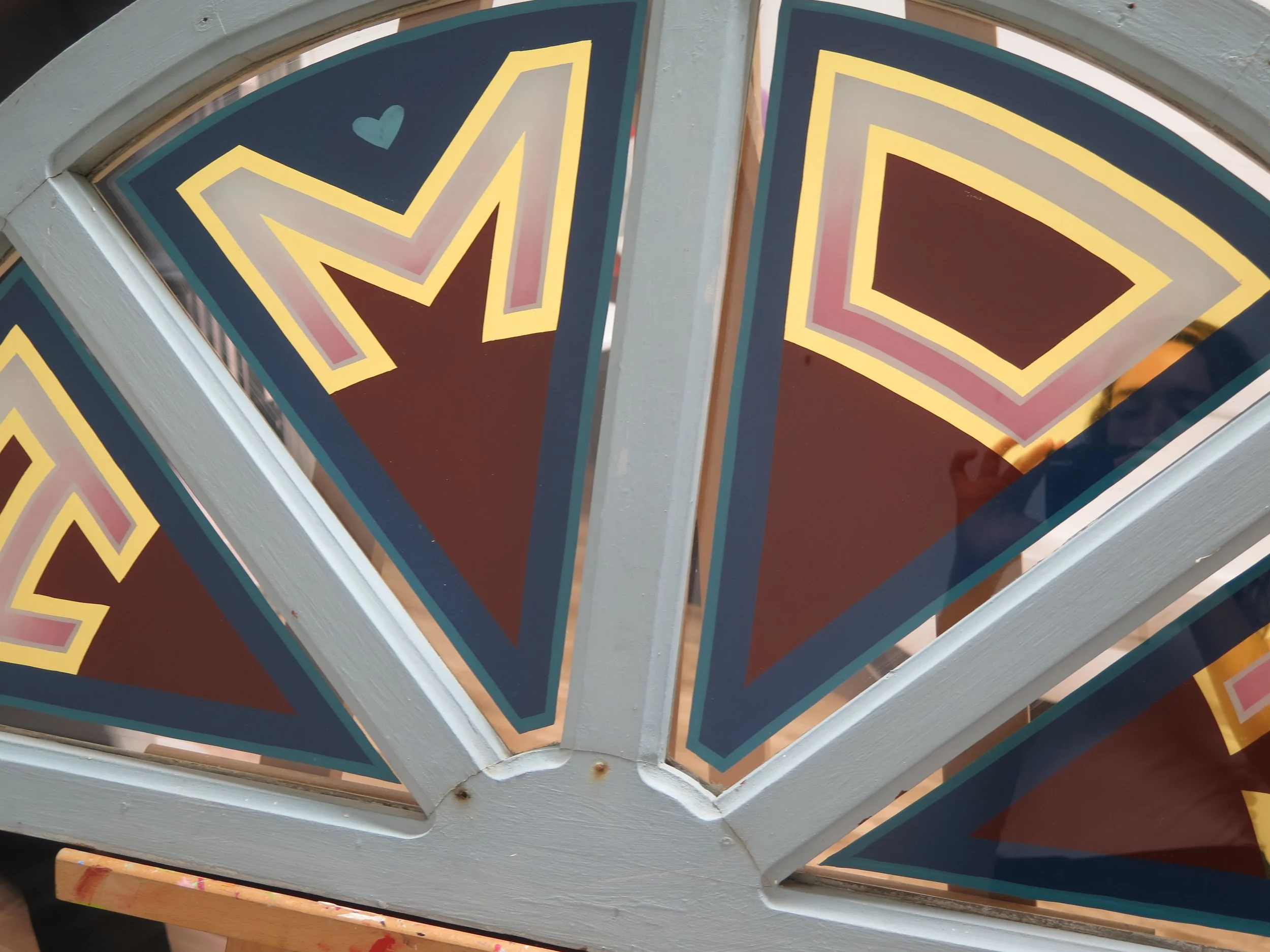 Esmalte sintético, hoja de oro 23k sobre ventana antigua